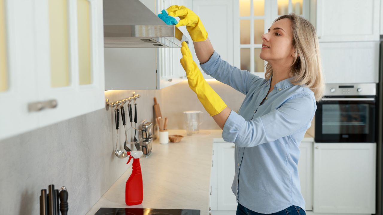 7. Σκούπισε την εστία, τα πλακάκια και τον απορροφητήρα (1 λεπτό)
