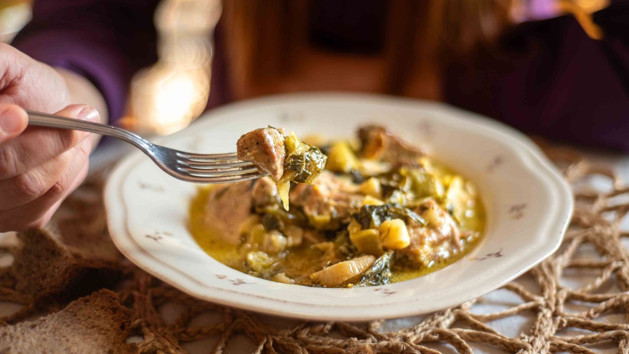 The secret to a successful pork with leeks and celery root lies in the careful selection and preparation of ingredients and in the slow melding of flavors. Choose tender cuts of pork with some fat for juiciness (ideally shoulder or neck).