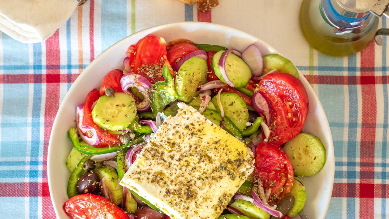 Simple, vibrant and full of flavor, Greek salad is the ultimate way to enjoy summer vegetables. The secret is fresh, high-quality ingredients: ripe, juicy tomatoes, crisp cucumber and peppers, sweet red onions, and creamy, tangy feta. Good extra virgin olive oil and Kalamata olives are essential, as is a sprinkling of aromatic oregano.