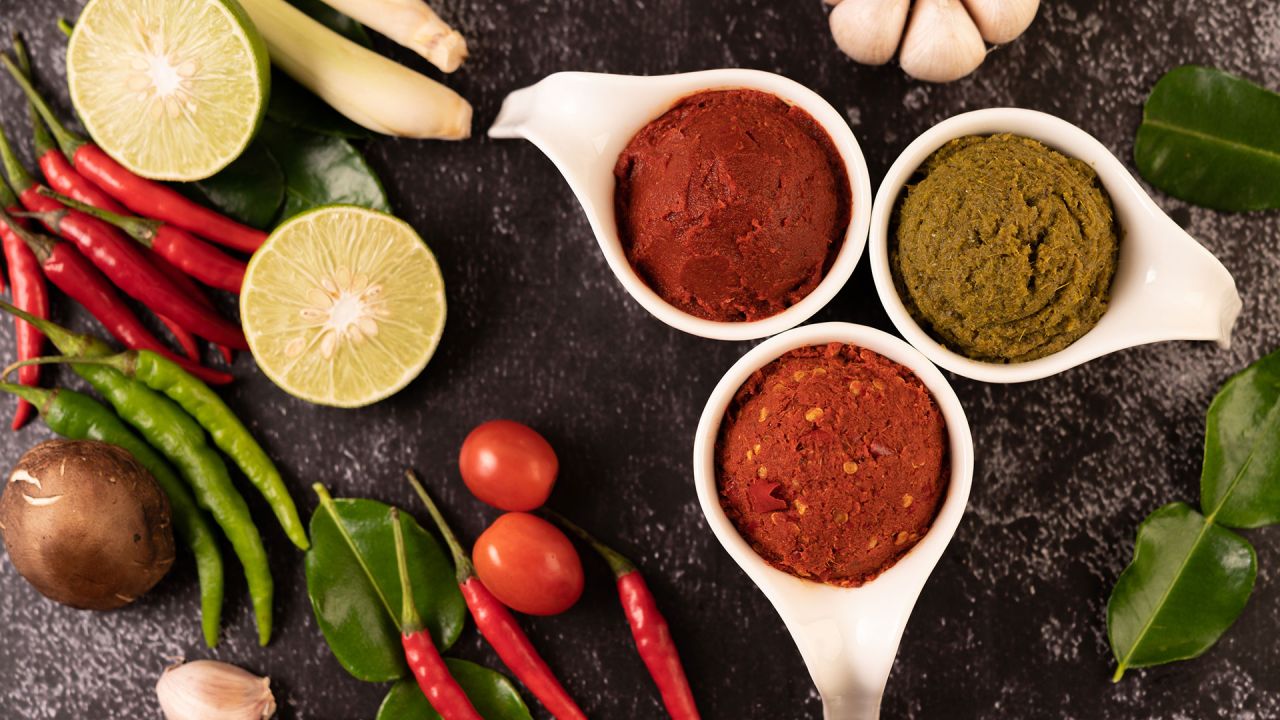 Πάστα κόκκινου κάρι (Ταϊλάνδη): Μείγμα από κόκκινη πιπεριά τσίλι, σκόρδο, λεμονόχορτο, galangal, ρίζες κόλιανδρου, πάστα γαρίδας καιμερικές φορές φύλλα kaffir lime και κύμινο. Χρησιμοποιείται στο Ταϊλανδέζικο κόκκινο κάρι.