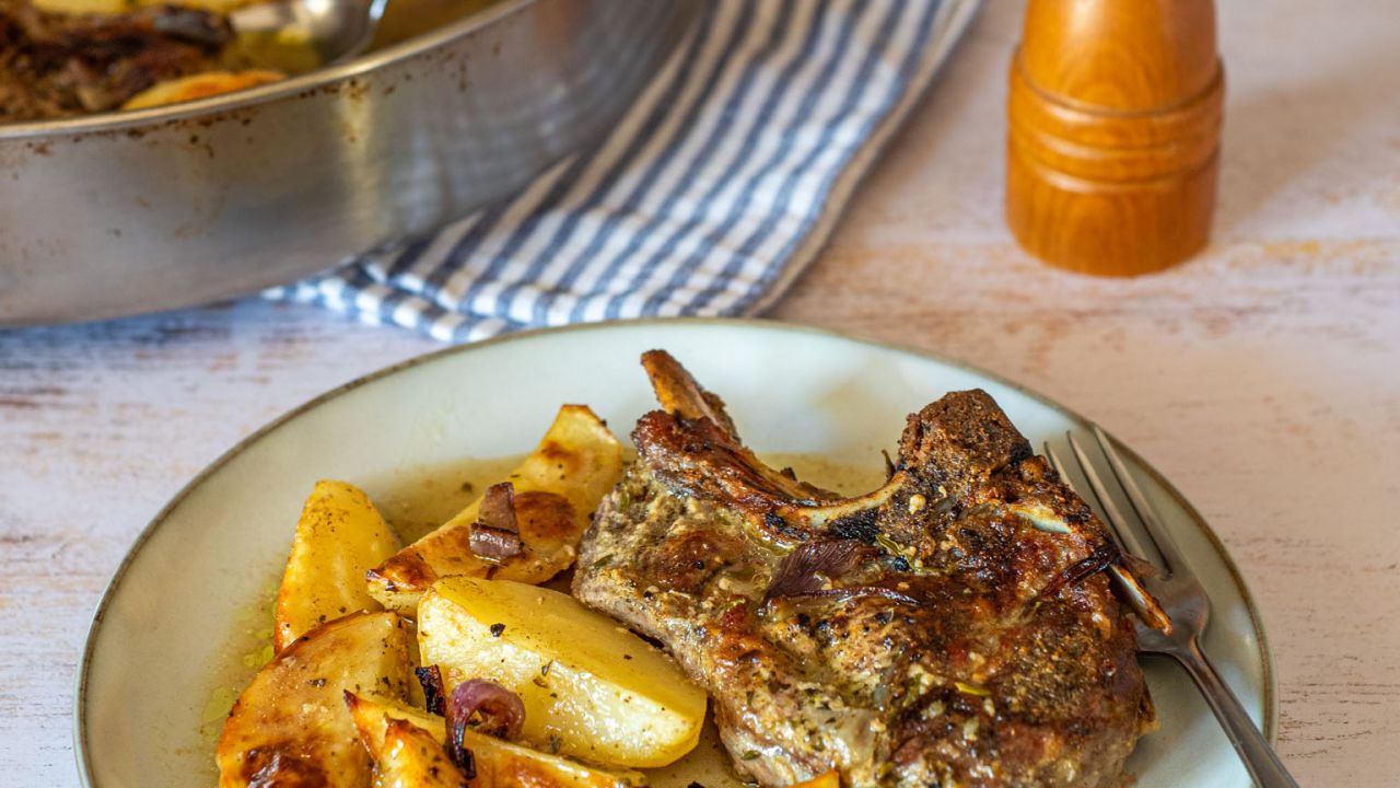 Χοιρινές μπριζόλες φούρνου με πατάτες και θυμάρι βήμα - βήμα