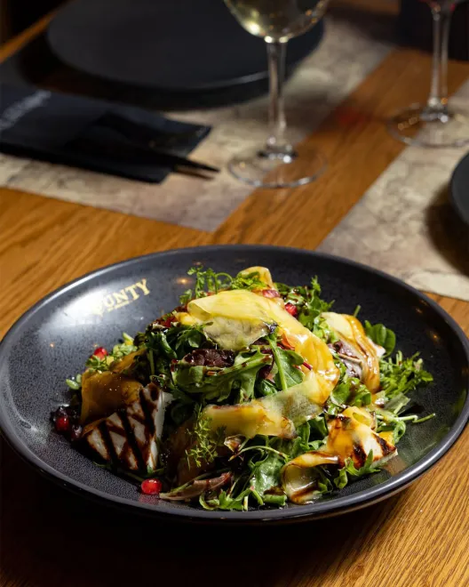 Σεφ στο Bounty είναι ο Γιώργος Νησίριος, με μακρά παρουσία στο χώρο, ο οποίος θεωρεί ότι η βάση ενός ιδανικού γεύματος είναι τα φρέσκα υλικά μαγειρεμένα με μεράκι και δημιουργική διάθεση. Πράγματι, στα πιάτα που κατέφθασαν στο τραπέζι διακρινόταν έντονα η φιλοσοφία του.