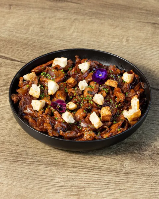 Προχωρήσαμε σε τηγανιά ψαρονέφρι μαριναρισμένο με αρωματικά βότανα, καραμελωμένο κρεμμύδι και κρουτόν από φοκάτσια, ποικιλία φρέσκων μανιταριών με σως τεριγιάκι και flakes παρμεζάνας, που αν και δεν είμαι φαν των μανιταριών ομολογώ πως ήταν αξιοπρεπέστατη, καθώς και συκώτι μοσχαρίσιο γάλακτος με ελαιόλαδο, λεμόνι και φρέσκια ρίγανη. Αν σου αρέσει το συκώτι, αξίζει σίγουρα να το παραγγείλεις εδώ.