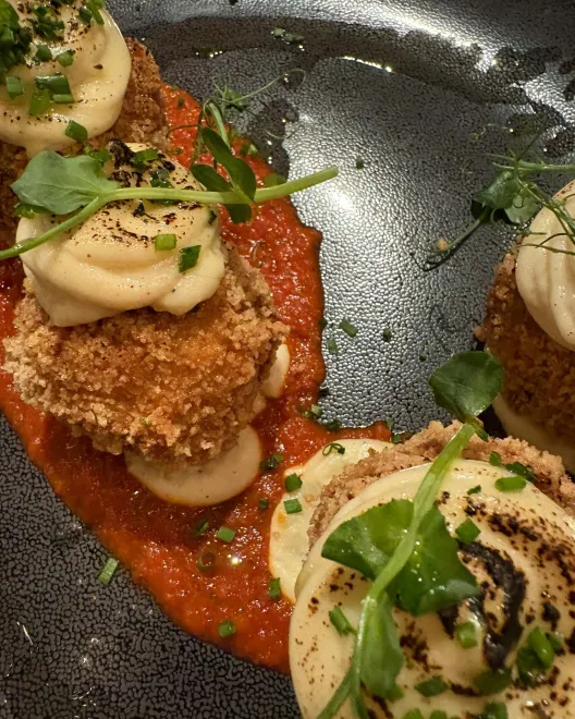 Έπειτα περάσαμε στα ορεκτικά και ανυπομονούσαμε για τα επόμενα. Πρώτα ήρθαν οι κροκέτες μουσακά, που αν και μόδα πλέον οι συγκεκριμένες ήταν πολύ νόστιμες και τα υλικά έδεναν μεταξύ τους, και η φωλιά πατάτας με 3 αυγά, καπνιστή πανσέτα, ντομάτα, μίξ τυριών και πάπρικα, που ομολογουμένως είναι ένα βαρύ πιάτο, αλλά δεν ήθελες να σταματήσεις να τρως. Εκείνη τη στιγμή χάρηκα στη συνειδητοποίηση ότι ήμασταν μεγάλη παρέα, αλλιώς θα είχα χορτάσει και μόνο με το συγκεκριμένο πιάτο.