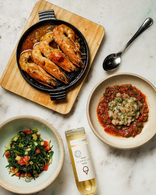 Και επειδή οι μεζέδες θέλουν και συντροφιά, σημείωσε ότι ο Dopios διαθέτει μια ενημερωμένη λίστα με ελληνικά κρασιά και αποστάγματα, που περιλαμβάνει περί τις 50 ετικέτες κρασιού και άλλες 24 αποσταγμάτων, ανάμεσά τους και αρκετά δυσεύρετα, όπως μονοποικιλιακά ή παλαιωμένα τσίπουρα.