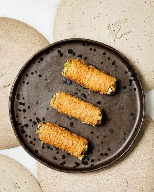 Το Dopios στην πλατεία Αγίων Θεοδώρων ήταν από τα μαγαζιά που ξεχώρισαν με το που άνοιξαν. Βρίσκεται σε μία από τις πιο ζωντανές πιάτσες του κέντρου, είναι φωτεινό, άνετο, σερβίρει κλασικούς μεζέδες - με μια πιο σύγχρονη ματιά μεν, αλλά σίγουρα όχι αυτό που θα λέγαμε «πειραγμένους», σε βαθμό που να μην καταλαβαίνεις τι είναι - και το μενού έχει την υπογραφή του Χριστόφορου Πέσκια. Με άλλα λόγια, είχε εξ αρχής όλα τα εφόδια για να πάει καλά.