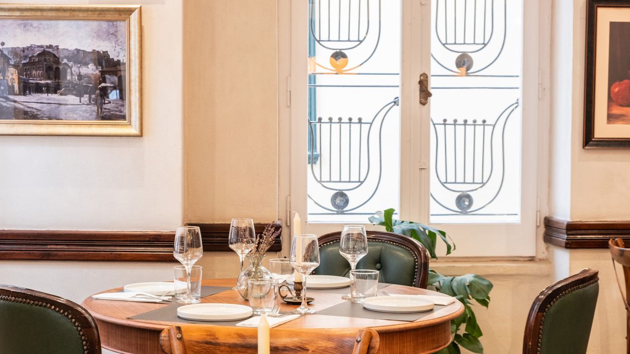 Ένα μεγαλοπρεπές δίπατο νεοκλασικό δίνει στέγη και ζωή στο εστιατόριο, το οποίο έχει πάρει το όνομά του από τις σιδεριές που κοσμούν τα παράθυρα του ισογείου του, καθώς απεικονίζουν το ομώνυμο μουσικό όργανο. Το εσωτερικό του αποπνέει αρχοντιά και χάρη παλιάς Αθήνας, σε bistro μετάφραση, με ασπρόμαυρο πάτωμα και ξύλινα τραπεζοκαθίσματα.