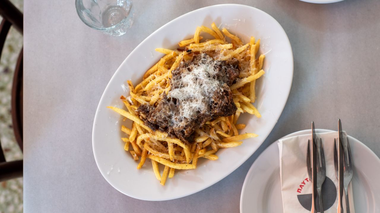 Το Πλυτά ξεκινά από νωρίς το μεσημέρι και φτάνει ως το βράδυ. Μέσα στη μέρα όμως το μενού εξελίσσεται: μαγειρείο και καφενείο το μεσημέρι, ψησταριά το βράδυ, με φαγητό από τον ξυλόφουρνο και τα κάρβουνα. Υπάρχουν κάποια στάνταρντ πιάτα -λέμε τώρα- όμως τα πιάτα ημέρας αλλάζουν καθημερινά, σύμφωνα με τη διαθεσιμότητα της αγοράς και την εποχή. Το ψωμί δικής τους παραγωγής και το λάδι τους μαζί με την ντομάτα και τις ελιές που μας έφεραν για αρχή είναι ένας πολύ καλός κι απόλυτα κατανοητός λόγος για να επιστρέφεις κάθε μέρα στο Πλυτά.