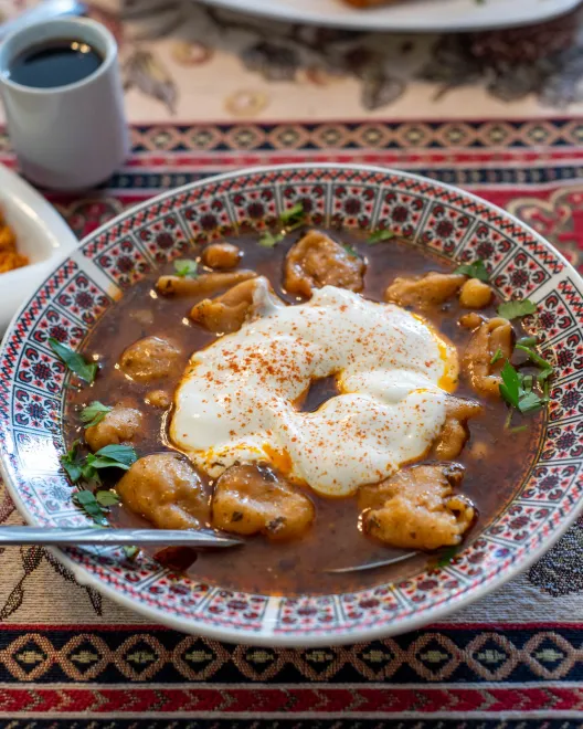 Το ιτσλί κεφτέ εδώ το κάνουν βραστό και είναι ένας εξαιρετικός στρογγυλός πλιγουρένιος κεφτές, γεμισμένος με πικάντικο κιμά. Είναι ιδιαίτερα αφράτος κι ελαφρύς και το σερβίρουν με το κομμάτι συνοδεύοντάς τον με φέτες λεμονιού. Τώρα πια κάνουν και το κλασσικό ιτσλί κεφτέ, που τηγανίζουν και σερβίρουν με μαρμελάδα ντομάτας.