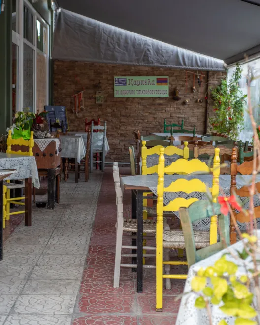 Το μαγαζί βρισκόταν πάνω σε μια πολυσύχναστη λεωφόρο που μέρα νύχτα διασχίζανε φορτηγά και ο σύζυγος της Ιζαμπέλας ο Στέλιος το είχε ξεκινήσει σαν σουβλατζίδικο. Στην πορεία - ήταν το 2018 - η Ιζαμπέλα είπε να δοκιμάσει να φτιάχνει το φαγητό των προγόνων της και να το σερβίρει στην αυλή με τις μουριές που απλωνόταν μπροστά, γιατί εσωτερικός χώρος δεν υπήρχε. Στην αρχή την πέρασαν για τρελή όμως εκείνοι δεν άκουσαν κανέναν κι έτσι έβγαλαν τα τραπέζια τους κάτω από τις μουριές που ο Στέλιος είχε φροντίσει να μεγαλώσει και να περικυκλώσει με τριανταφυλλιές που φύτεψε με τα χέρια του και είχε στολίσει με κάμποσα χρωματιστά λαμπιόνια. Και κάπως έτσι ξεκίνησαν να το παλεύουν. Με πείσμα, αξιοπρέπεια και καθαρή καρδιά, εκείνος στην ψησταριά κι εκείνη στις κατσαρόλες της.