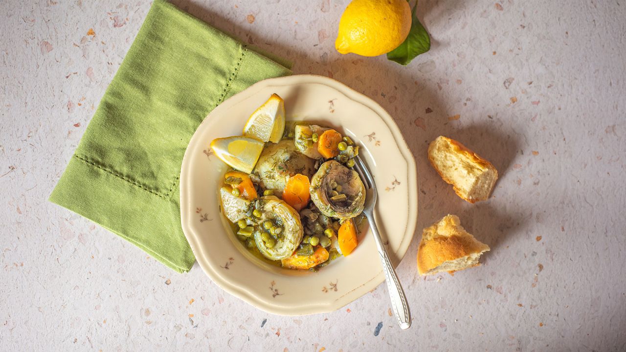 - 8-10 αγκινάρες καθαρισμένες (φρέσκες ή κατεψυγμένες)