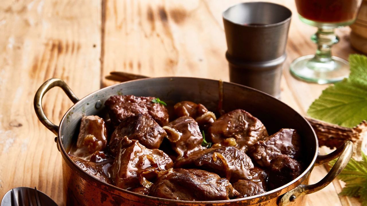 • 1½-2 κιλά αγριογούρουνο, σπάλα ή μπούτι χωρίς κόκκαλο σε μεγάλες μπουκιές