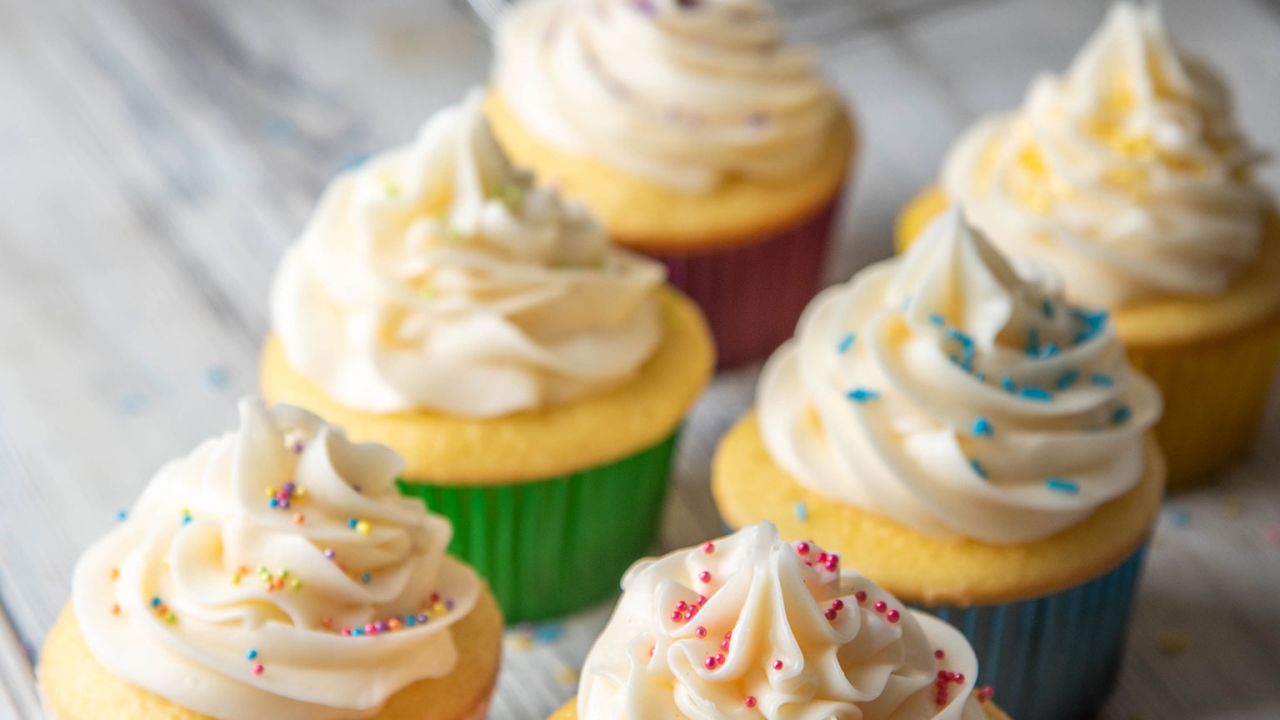 1. Για τα cupcakes βανίλιας με frosting προθερμαίνουμε τον φούρνο στους 175°C στις αντιστάσεις και βάζουμε χάρτινες θήκες ψησίματος για cupcakes σε μία φόρμα με 12 υποδοχές για μάφιν.