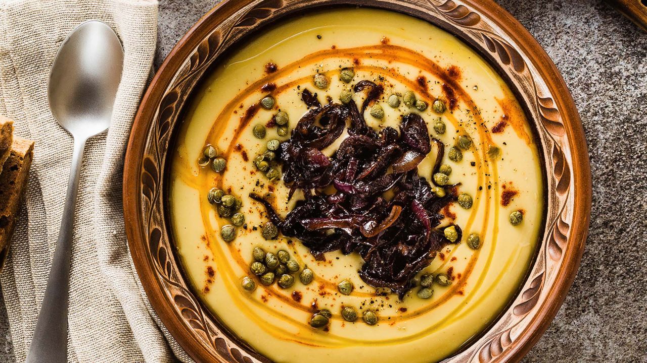 - Σερβίρουμε τη φάβα χλιαρή ή ζεστή με το μείγμα των κρεμμυδιών.