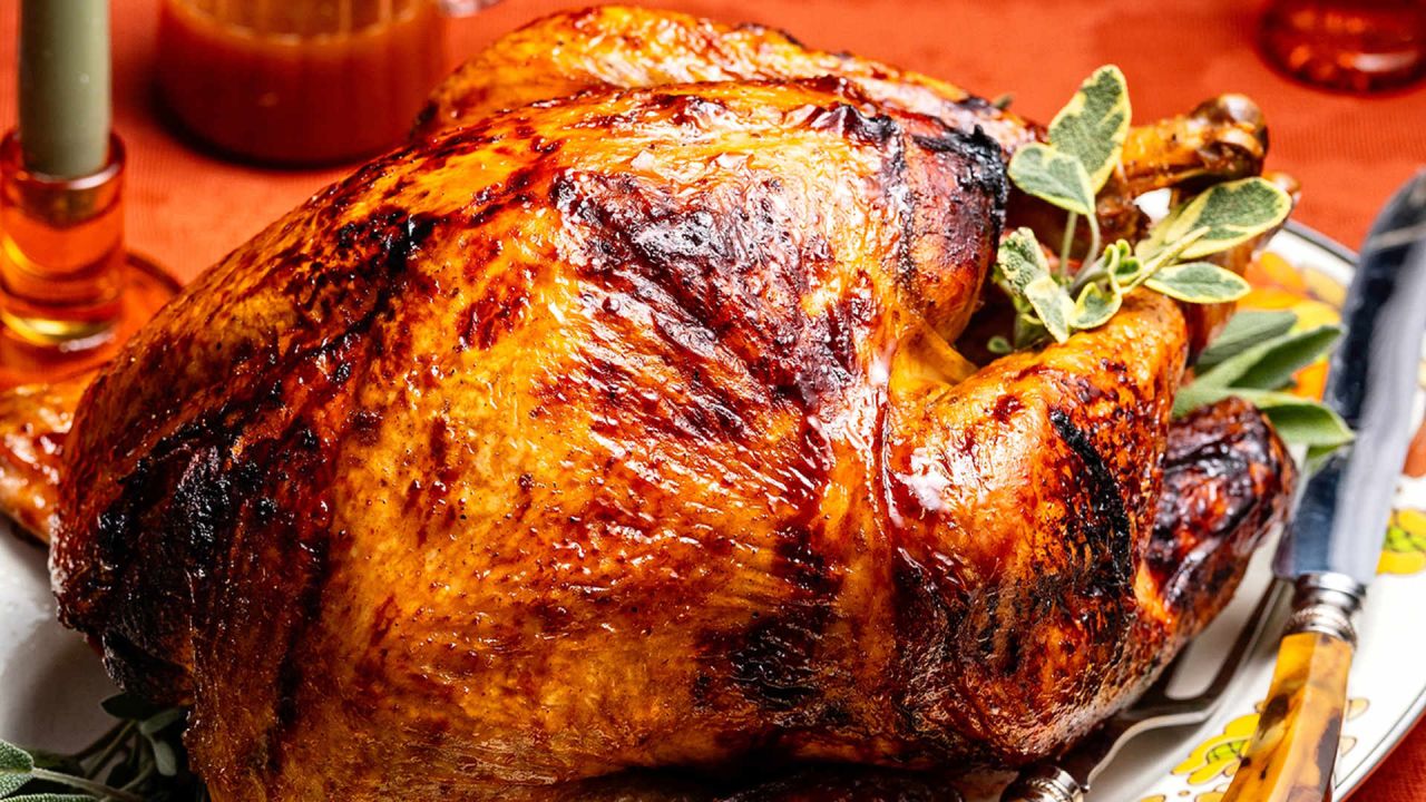 - Αλείφουμε ξανά τη γαλοπούλα με το υπόλοιπο γλάσο που κρατήσαμε και ψήνουμε μέχρι να η θερμοκρασία της να φτάσει στους 68°C.