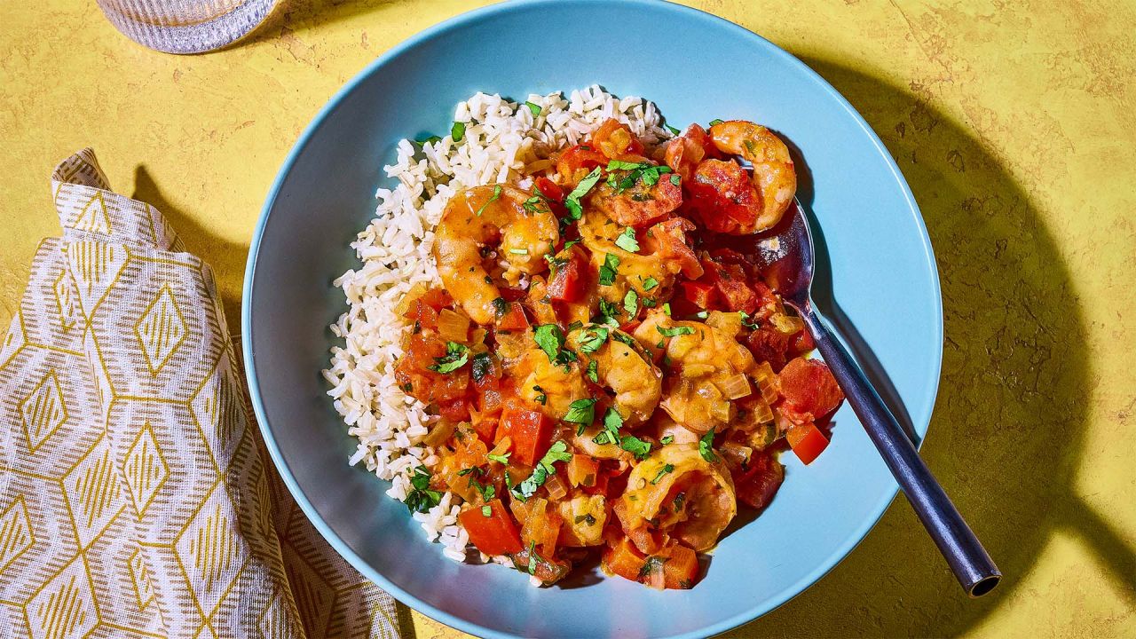 Η συνταγή για αυτές τις ζουμερές γαρίδες μας έρχεται από τη Βραζιλία, όπου είναι γνωστή ως bobó de camarão. Έχει έντονο κόκκινο χρώμα και ταιριάζει ιδανικά με ρύζι.