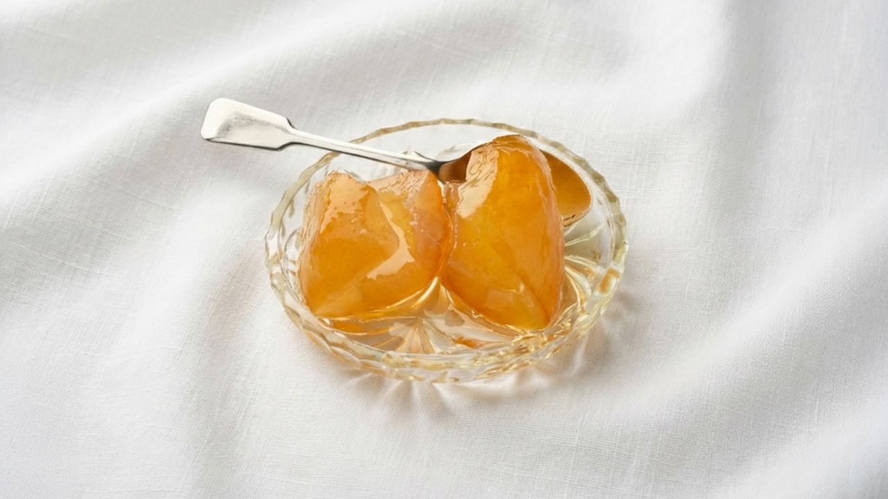- Μοιράζουμε το γλυκό καυτό σε αποστειρωμένα βάζα, κλείνουμε και αναποδογυρίζουμε τα βάζα. Όταν κρυώσει εντελώς το γλυκό γυρίζουμε τα βάζα από την καλή. Όταν ανοίξουμε το γλυκό το διατηρούμε στο ψυγείο.