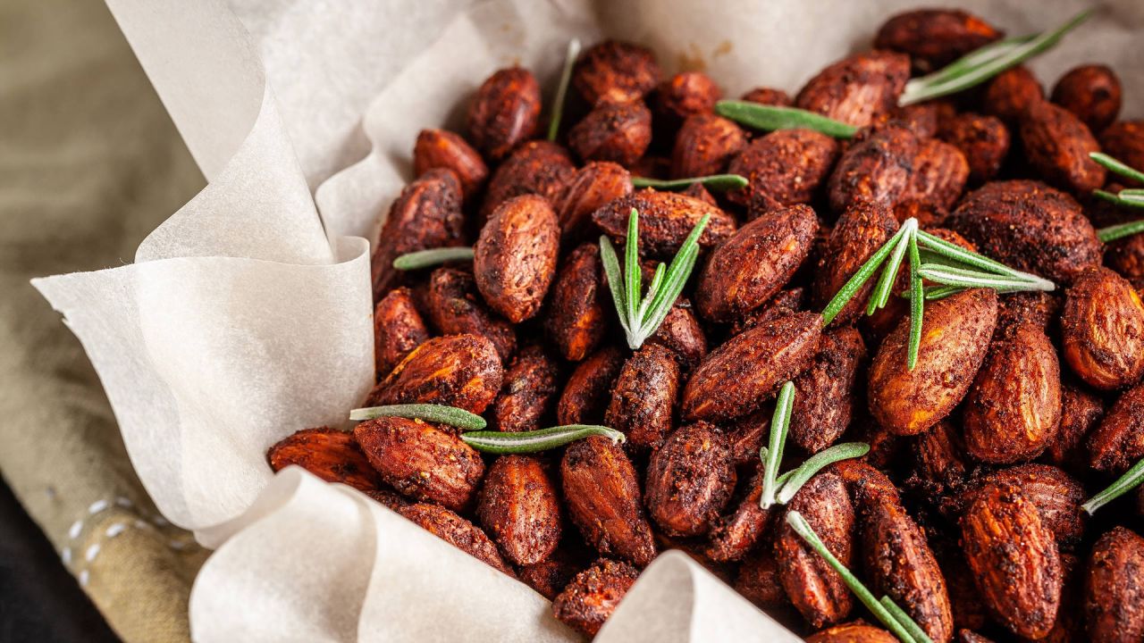 1. Για τα γλυκοαλμυρά αμύγδαλα με μέλι, μπαχαρικά και μυρωδικά προθερμαίνουμε τον φούρνο στους 170°C.