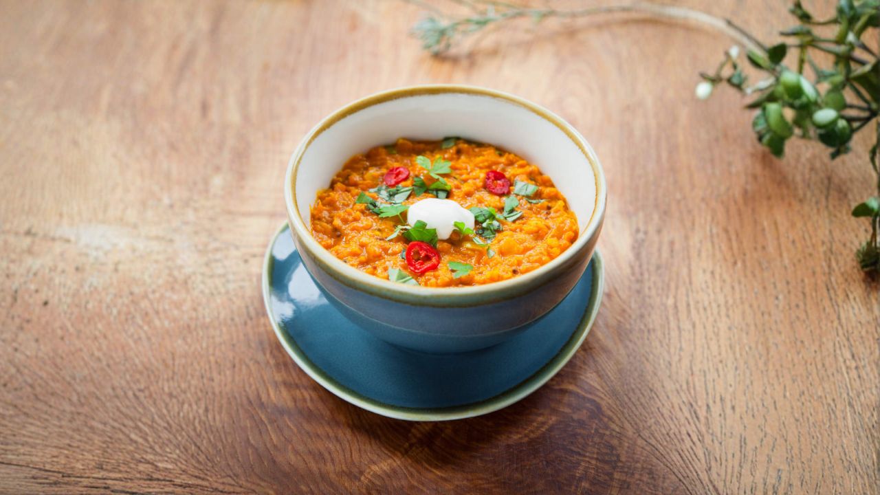 - Ανακατεύουμε καλά και σερβίρουμε ζεστό το νταλ σε πιάτα.