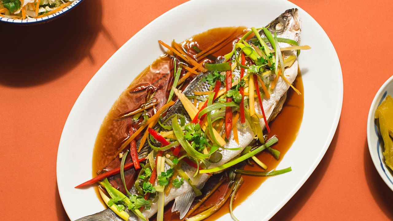4. Μαγειρεύουμε σε μέτρια προς δυνατή φωτιά για περίπου 20 λεπτά, μέχρι ο ατμός να ψήσει το ψάρι μέχρι τη ραχοκοκαλιά.