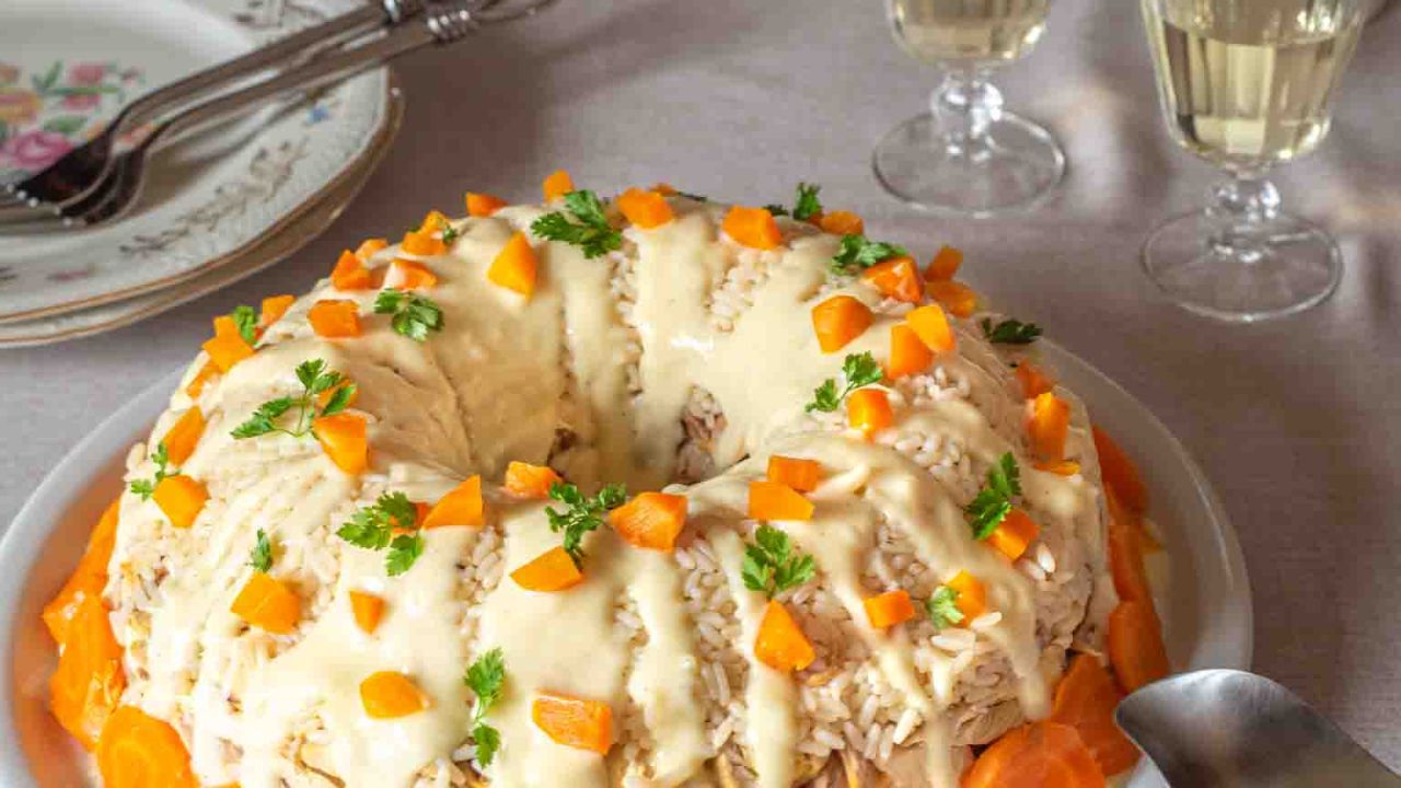 - Αναποδογυρίζουμε προσεκτικά σε πιατέλα, περιχύνουμε με λίγη σάλτσα και σερβίρουμε την υπόλοιπη σε σαλτσιέρα, για να προσθέσει ο καθένας στο πιάτο του. Στολίζουμε με τα καρότα που φυλάξαμε και λίγα φυλλαράκια από φρέσκα μυρώνια ή μαϊντανό.