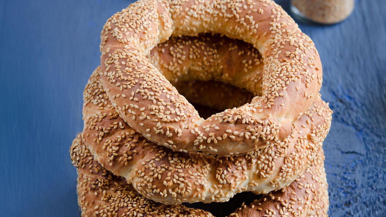 - Περνάμε κάθε κουλούρι από το νερό με το μέλι και μετά από το σουσάμι, πιέζοντας ελαφρά ώστε να πάει παντού. Μεταφέρουμε στο ταψί που έχουμε στρώσει με αντικολλητικό χαρτί ψησίματος και τα αφήνουμε να φουσκώσουν για 1 ώρα.