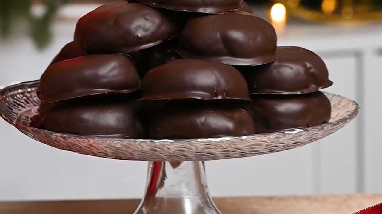 - Τους αφήνουμε να στεγνώσουν σε σχάρα και τους σερβίρουμε σε πιατέλα, αφού στεγνώσει και σταθεροποιηθεί η σοκολάτα.