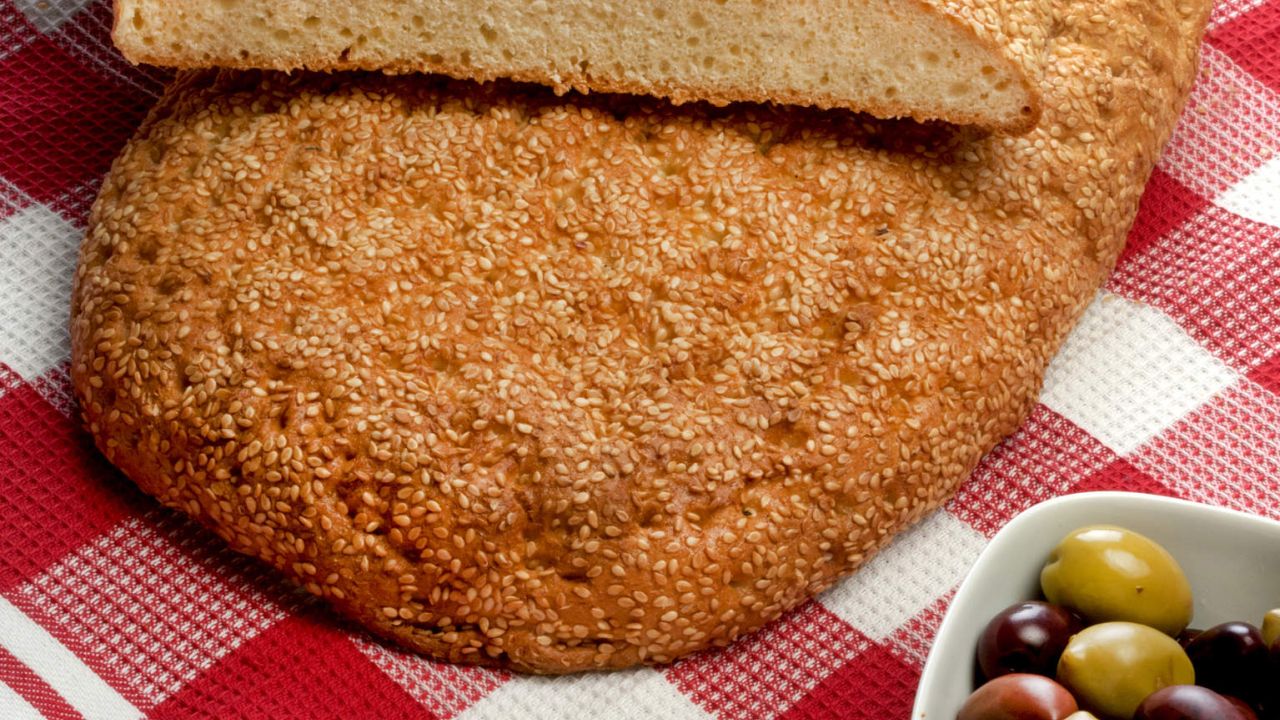 - Αλείφουμε ελαφρά με λίγο νερό (ή μείγμα νερού και ελάχιστου ταχινιού για πιο έντονη γεύση), πασπαλίζουμε με σουσάμι και πιέζουμε απαλά.