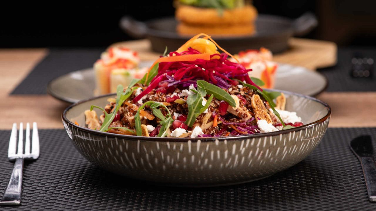 - Όταν θέλουμε να σερβίρουμε, προσθέτουμε τα αποξηραμένα φρούτα και τους ξηρούς καρπούς στη σαλατιέρα με τα λαχανικά, περιχύνουμε με το dressing και ανακατεύουμε καλά.