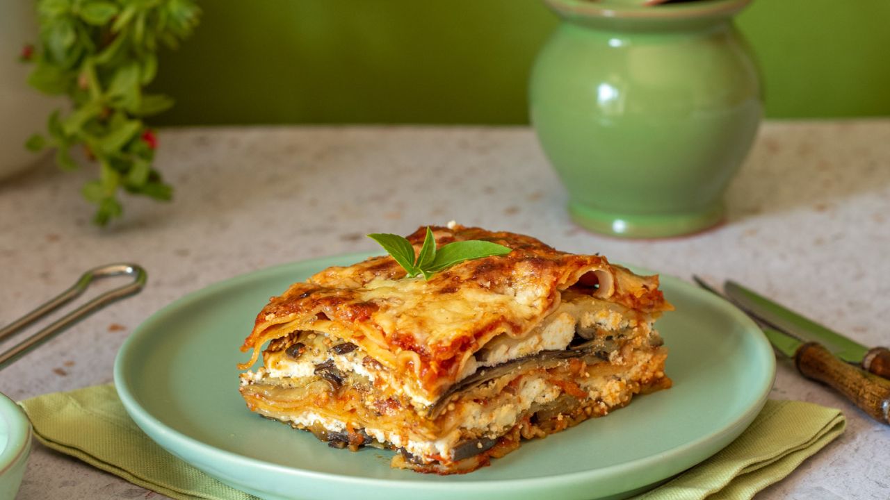 Λαζάνια με μελιτζάνα, σάλτσα φρέσκιας ντομάτας και ελληνικά τυριά