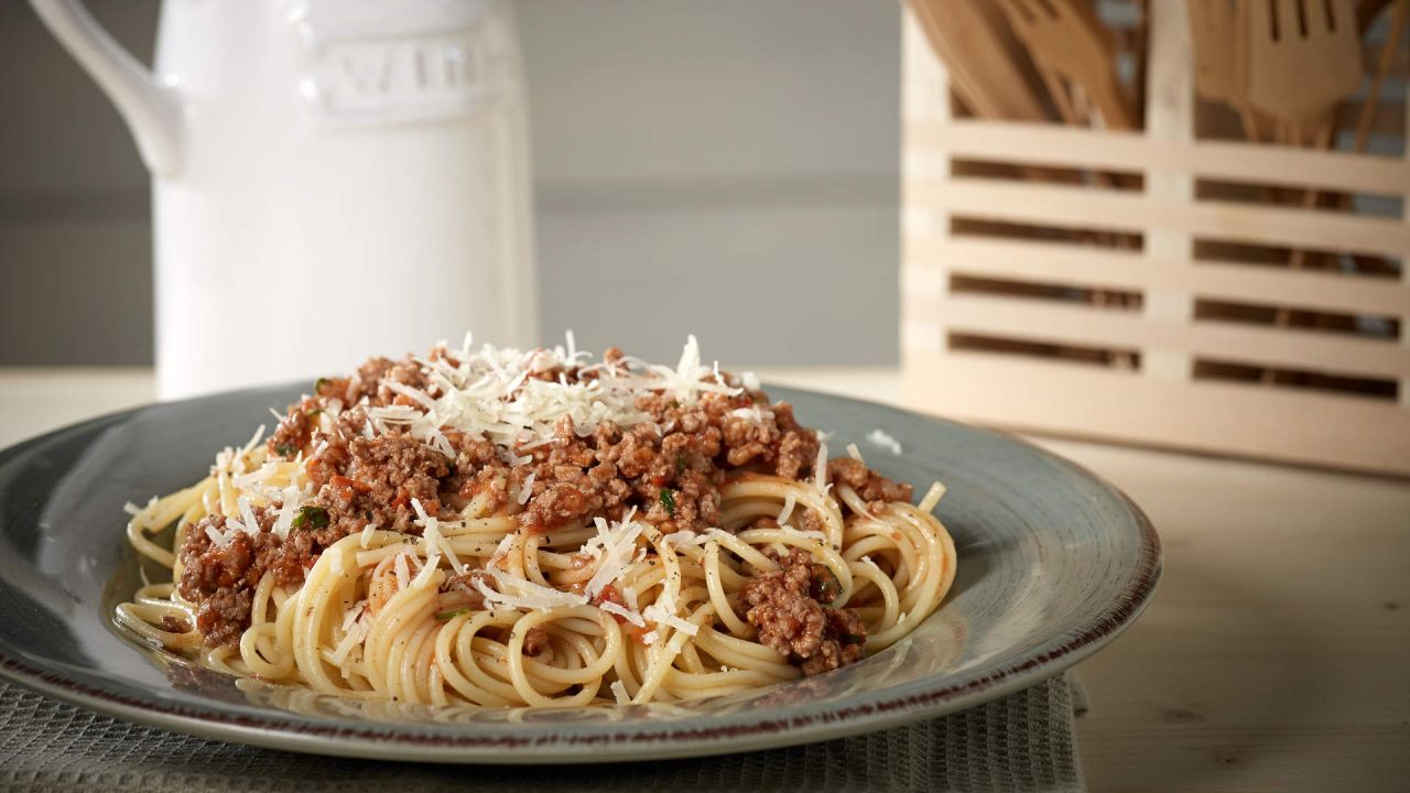 6. Σερβίρουμε αμέσως τα ζυμαρικά σε πιάτα, προσθέτουμε από πάνω κιμά και πασπαλίζουμε με μπόλικο τριμμένο τυρί.