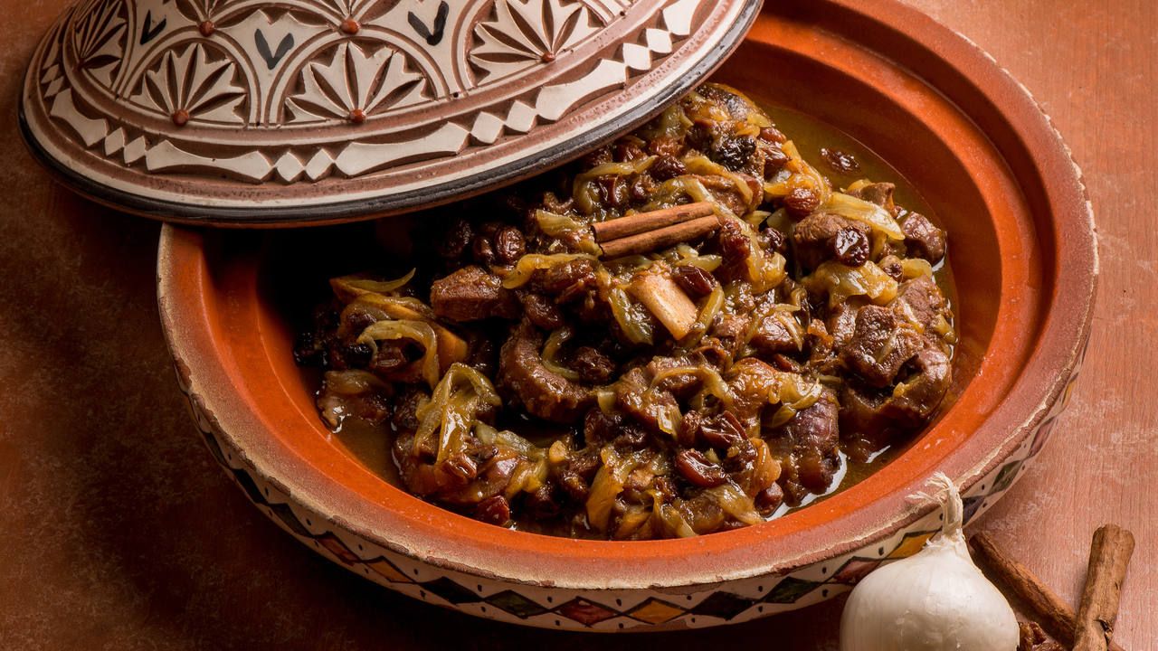 - Για το μαροκάνικο μοσχαράκι ταζίν σε χαμηλή και φαρδιά κατσαρόλα, ζεσταίνουμε το ελαιόλαδο και σοτάρουμε το κρέας μαζί με το κρεμμύδι και τον κουρκουμά, σε δυνατή φωτιά, μέχρι να μαραθεί το κρεμμύδι.