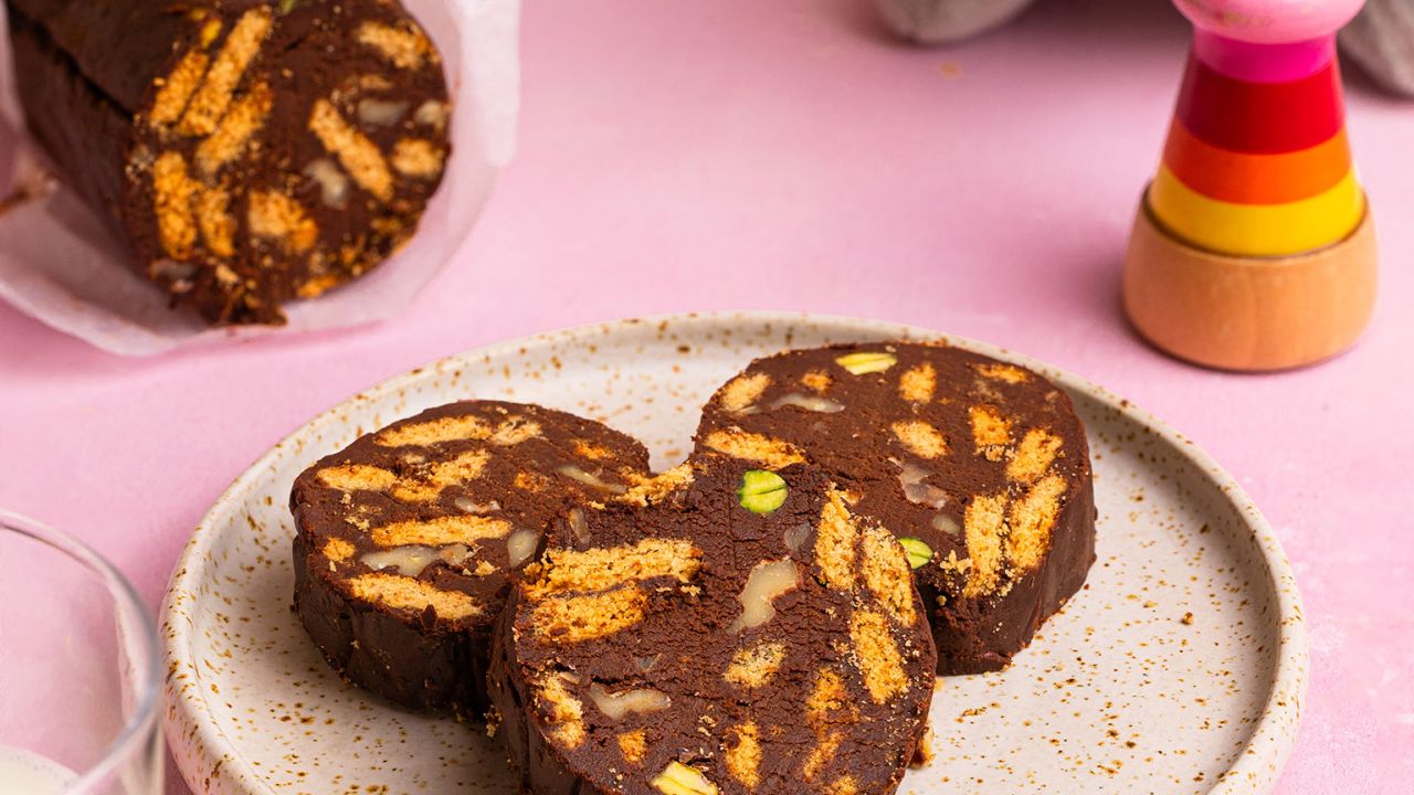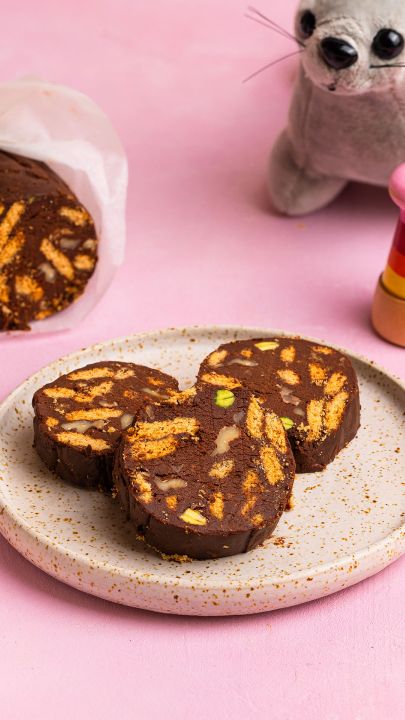 - Μπορούμε να εμπλουτίσουμε το σοκολατένιο μωσαϊκό με 1-2 κ.σ. φιστικοβούτυρο.