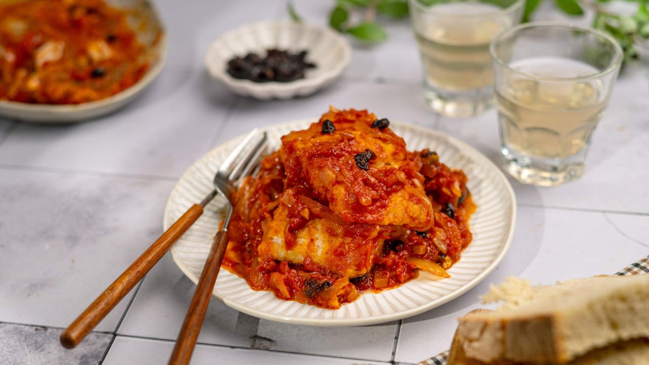 - Σιγομαγειρεύουμε για περίπου 10 λεπτά, ώστε να ενωθούν οι γεύσεις και να απορροφήσει ο μπακαλιάρος τη σάλτσα. Ανακινούμε απαλά το σκεύος για να ανακατέψουμε χωρίς να διαλυθεί το ψάρι.