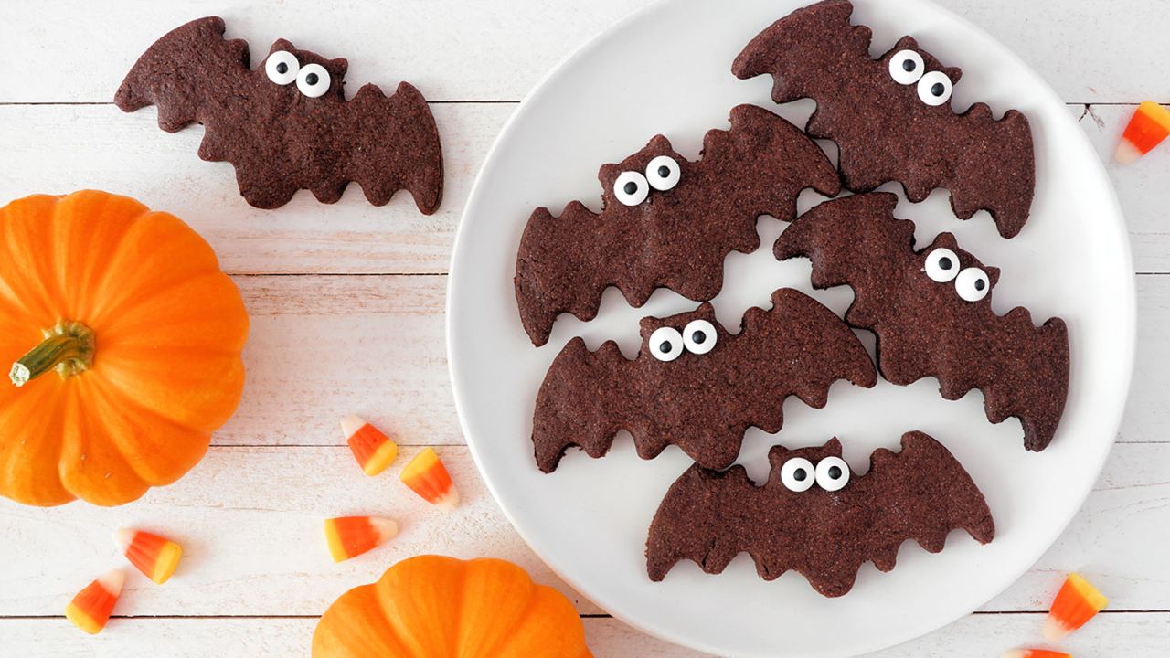 - Ανοίγουμε τη ζύμη σε πάχος περίπου 0,5 εκ. και με κουπ πατ σε σχήμα νυχτερίδας κόβουμε τα μπισκότα.