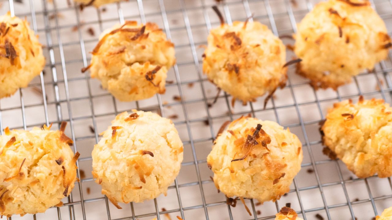 - Για τα μπισκοτάκια καρύδας ανακατεύουμε σε μπολ όλα τα υλικά μαζί.