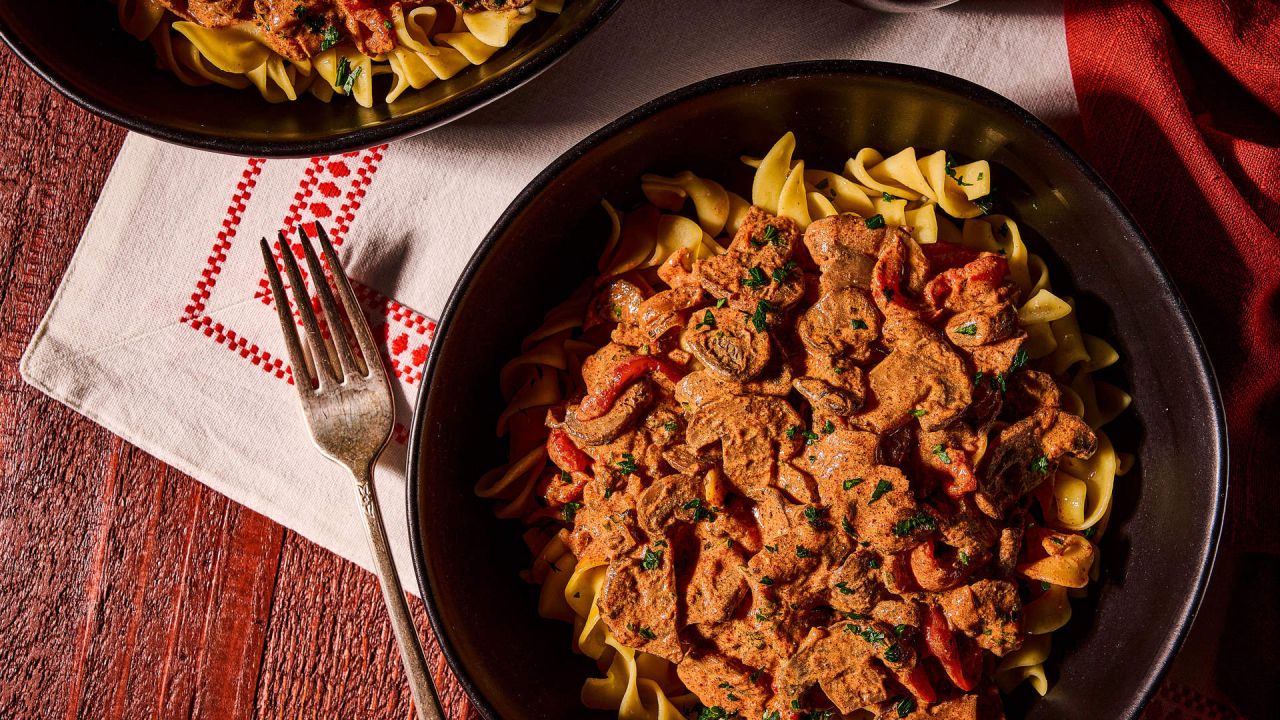 4. Χαμηλώνουμε τη φωτιά σε μέτρια προς χαμηλή ένταση, προσθέτουμε την πάπρικα και τη μαντζουράνα και μαγειρεύουμε για περίπου 5 λεπτά, μέχρι να ενωθούν τα αρώματα.