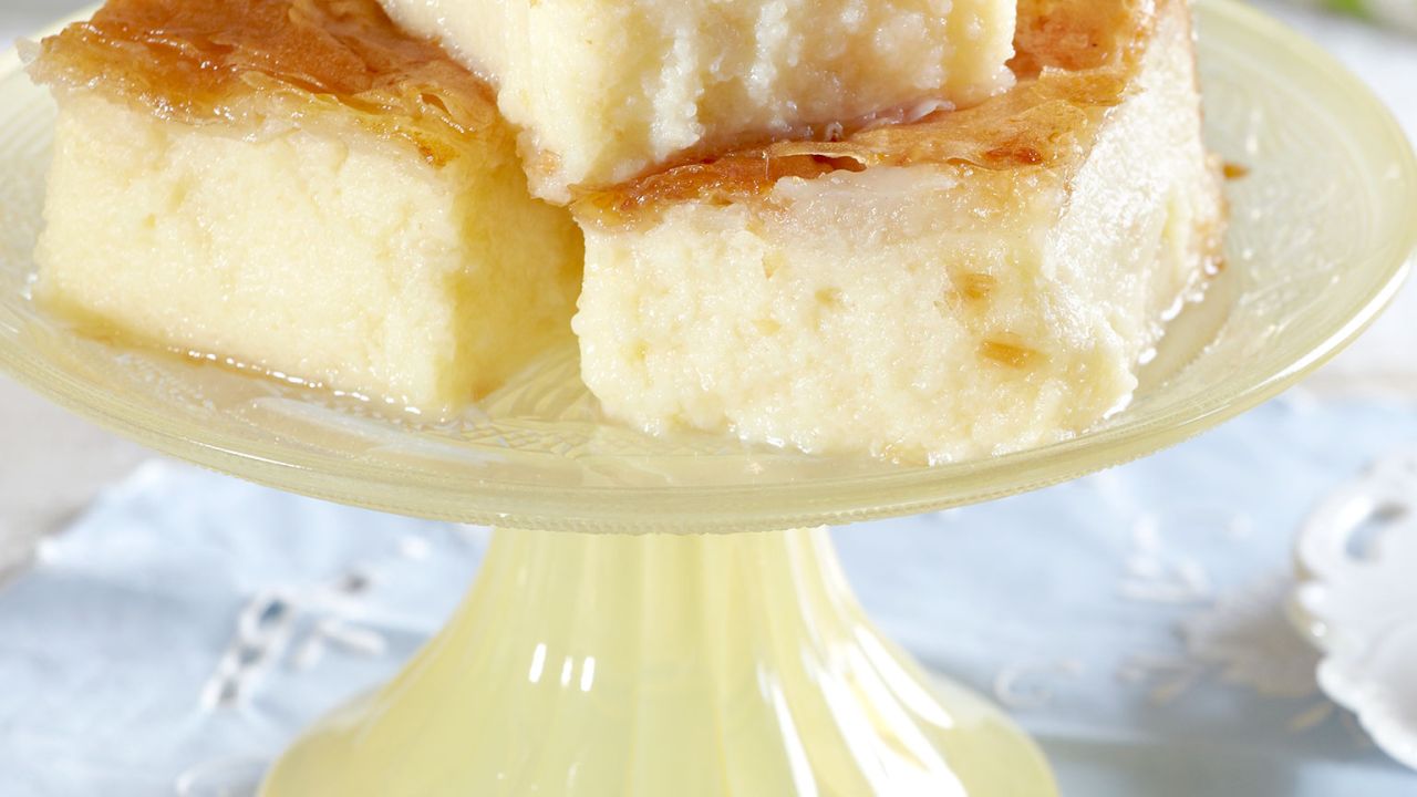 - Αλείφουμε την επιφάνεια του γλυκού με βούτυρο και χαράσσουμε με μαχαίρι σε κομμάτια. Σταματάμε το μαχαίρι λίγο πριν φτάσουμε στην κρέμα.
