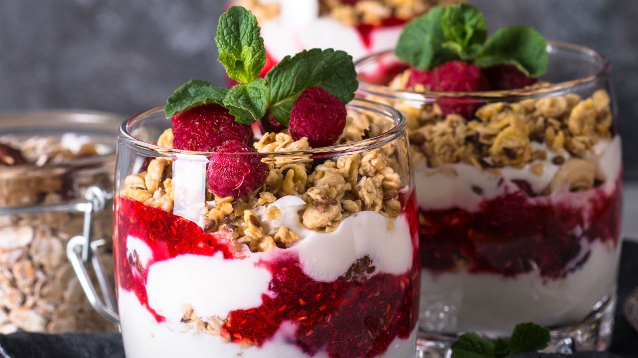 - Σε ποτήρια ή μπολ βάζουμε εναλλάξ στρώσεις από γιαούρτι, γκρανόλα και σμέουρα. Σερβίρουμε αμέσως ή τοποθετούμε στο ψυγείο για λίγη ώρα ώστε να ενωθούν οι γεύσεις.