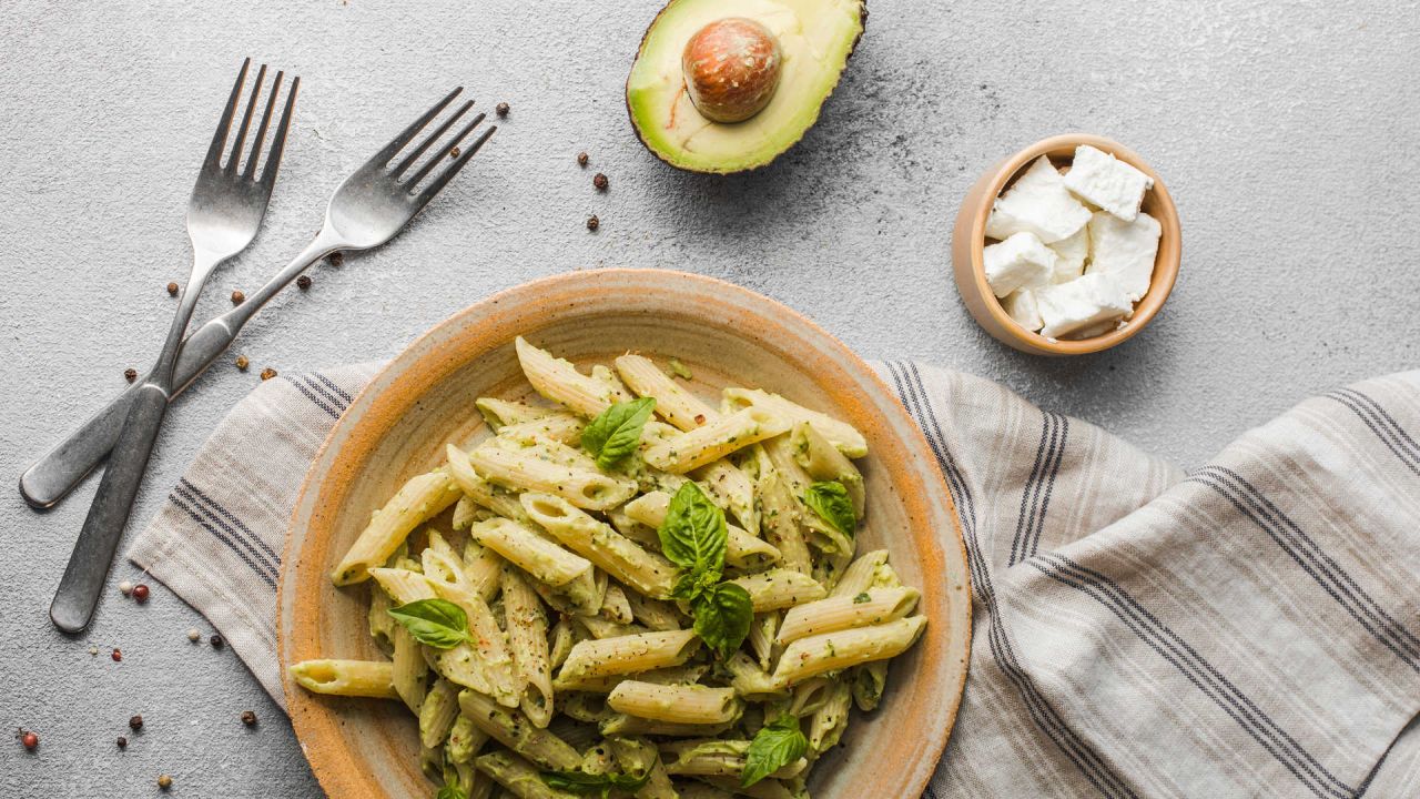 - Για τις πένες με πέστο αβοκάντο, φέτα και βασιλικό βράζουμε τα ζυμαρικά σε άφθονο αλατισμένο νερό, σύμφωνα με τις οδηγίες της συσκευασίας. Κρατάμε λίγο από το νερό τους και σουρώνουμε.