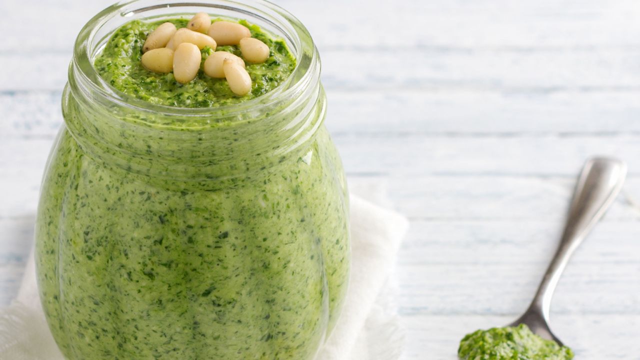 4. Μεταφέρουμε σε βάζο και διατηρούμε το πέστο στο ψυγείο.