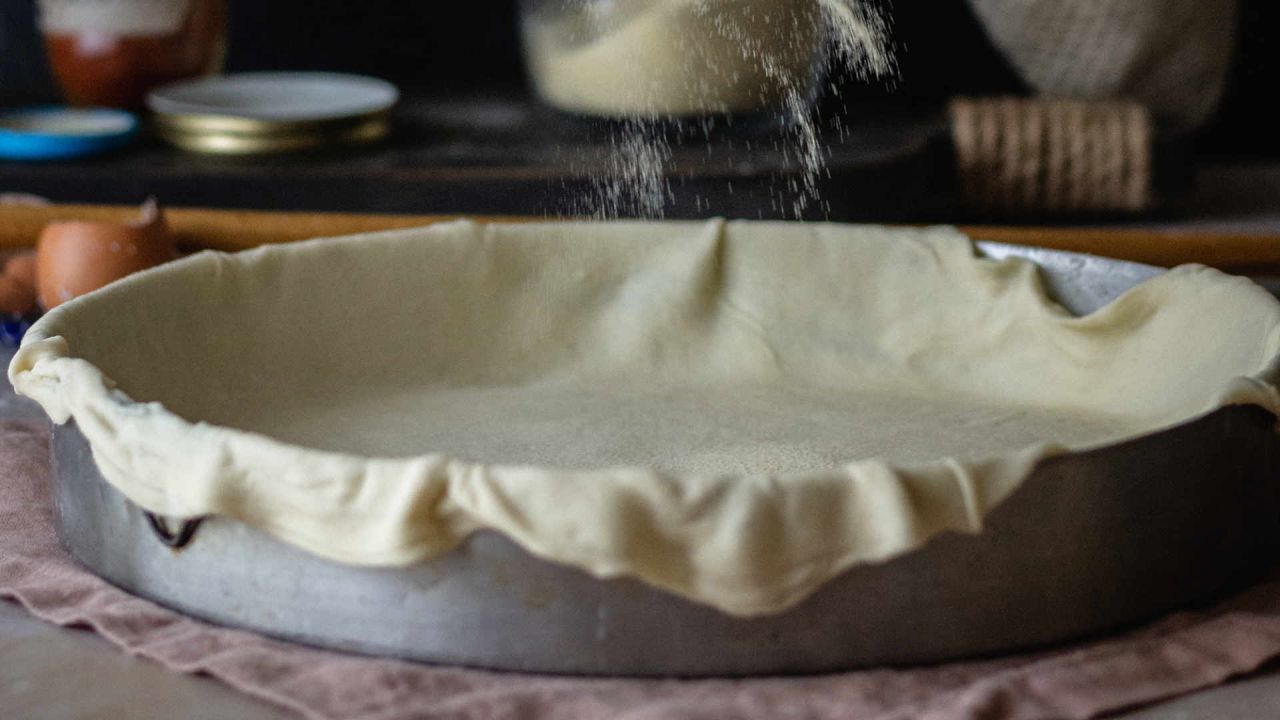 Στη ζύμη για πίτες είναι σημαντικό να προσέξουμε δύο πράγματα: Το αλεύρι και τη λιπαρή ουσία. Εδώ προτιμώ το αλεύρι τύπου 55%, το οποίο παράγεται από το καλύτερο 55% του σίτου. Το συγκεκριμένο αλεύρι χρησιμοποιείται για ψωμάκια πολυτελείας, ψωμί τοστ, φρυγανιές κλπ.. Όσον αφορά στη λιπαρή ουσία, έχω επιλέξει μαργαρίνη, τη σκληρή συγκεκριμένα, καθώς πρόκειται για ένα γαλάκτωμα λίπους και νερού το οποίο μπορεί να αποτελείται από διαφορετικά έλαια και είναι η καλύτερη επιλογή για πίτα.