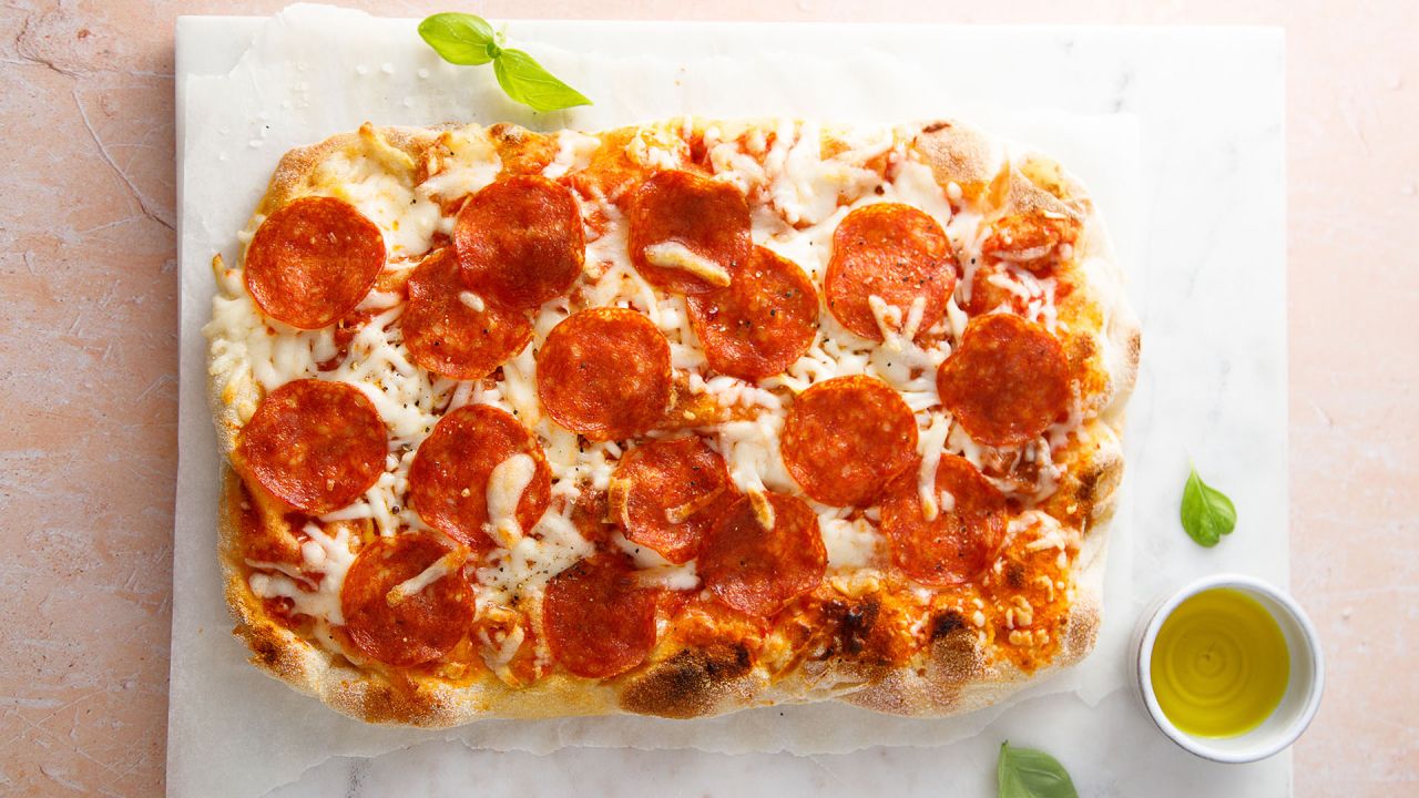 Ελαφρώς πικάντικη και λαχταριστή, συνδυάζει αφράτη ζύμη, πλούσια σάλτσα ντομάτας, λιωμένη μοτσαρέλα και λεπτές φέτες πεπερόνι που χαρίζουν έντονη γεύση και άρωμα.