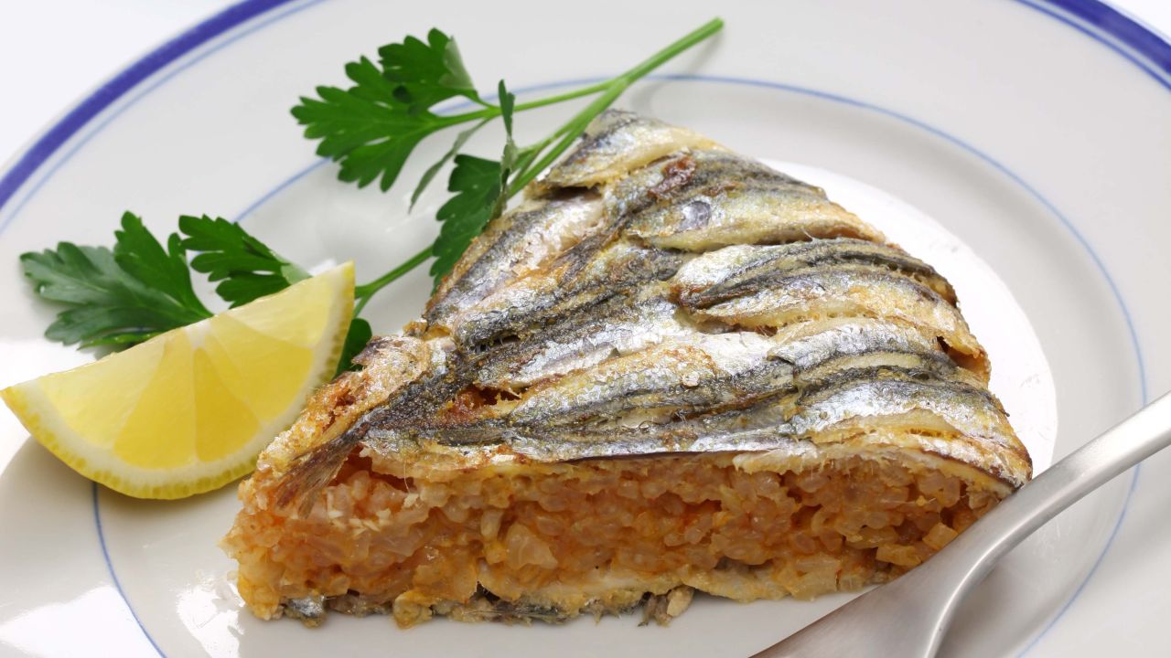 - Βουτυρώνουμε ένα ταψί διαμέτρου 22-24 εκ. και στρώνουμε τον πάτο και τα πλαϊνά με φιλέτα γαύρου. Δεν πρέπει να αφήσουμε πουθενά κενό.
