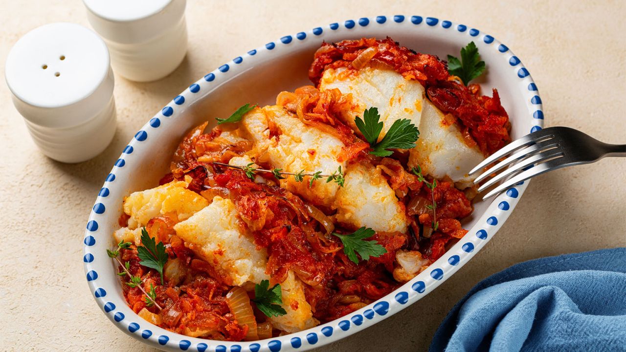 - 1 κιλό φιλέτο ψαριού ή ξαλμυρισμένο παστό μπακαλιάρο