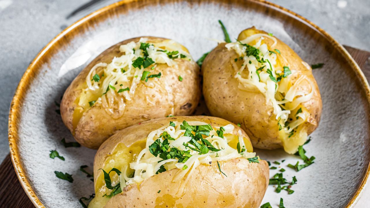 - Για τις ψητές πατάτες με βούτυρο, τυρί και φρέσκο μαϊντανό (jacket potatoes), προθερμαίνουμε τον φούρνο στους 200°C στον αέρα.