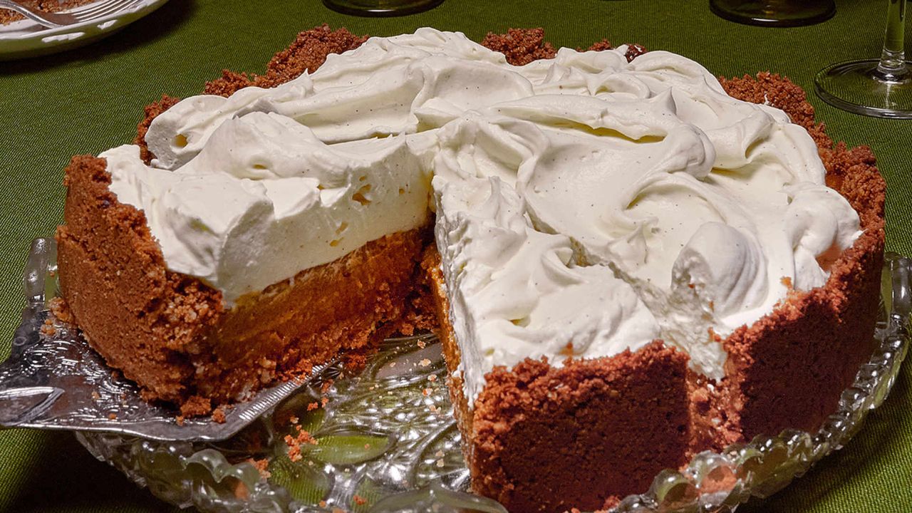 3. Ξεφορμάρουμε την τάρτα, μεταφέρουμε σε πιατέλα και απλώνουμε επάνω την κρέμα. Κόβουμε σε κομμάτια και σερβίρουμε.