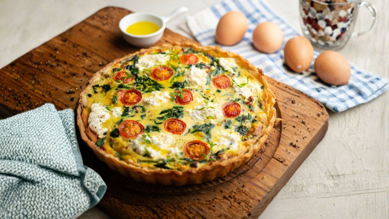 1. Για την κις με σπανάκι, ντοματίνια και μοτσαρέλα βάζουμε σε ένα μπολ το αλεύρι και το παγωμένο βούτυρο Lurpak για τη βάση και τα τρίβουμε με τα χέρια μας μέχρι να γίνουν σαν ψίχουλα.