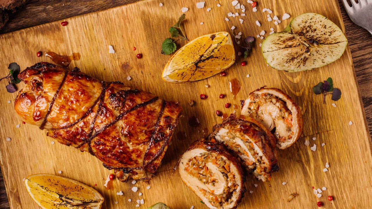 Τα καρύδια δίνουν υφή, το δενδρολίβανο αρωματίζει το κρέας, ενώ στο ταψί προσθέτουμε φέτες πορτοκαλιού που δίνουν φρεσκάδα και κάνουν τα υγρά του ψησίματος ιδανικά για μια απλή και φίνα σάλτσα. Είναι ένα πιάτο που μοσχοβολάει χειμώνα, γιορτή και ζεστασιά!