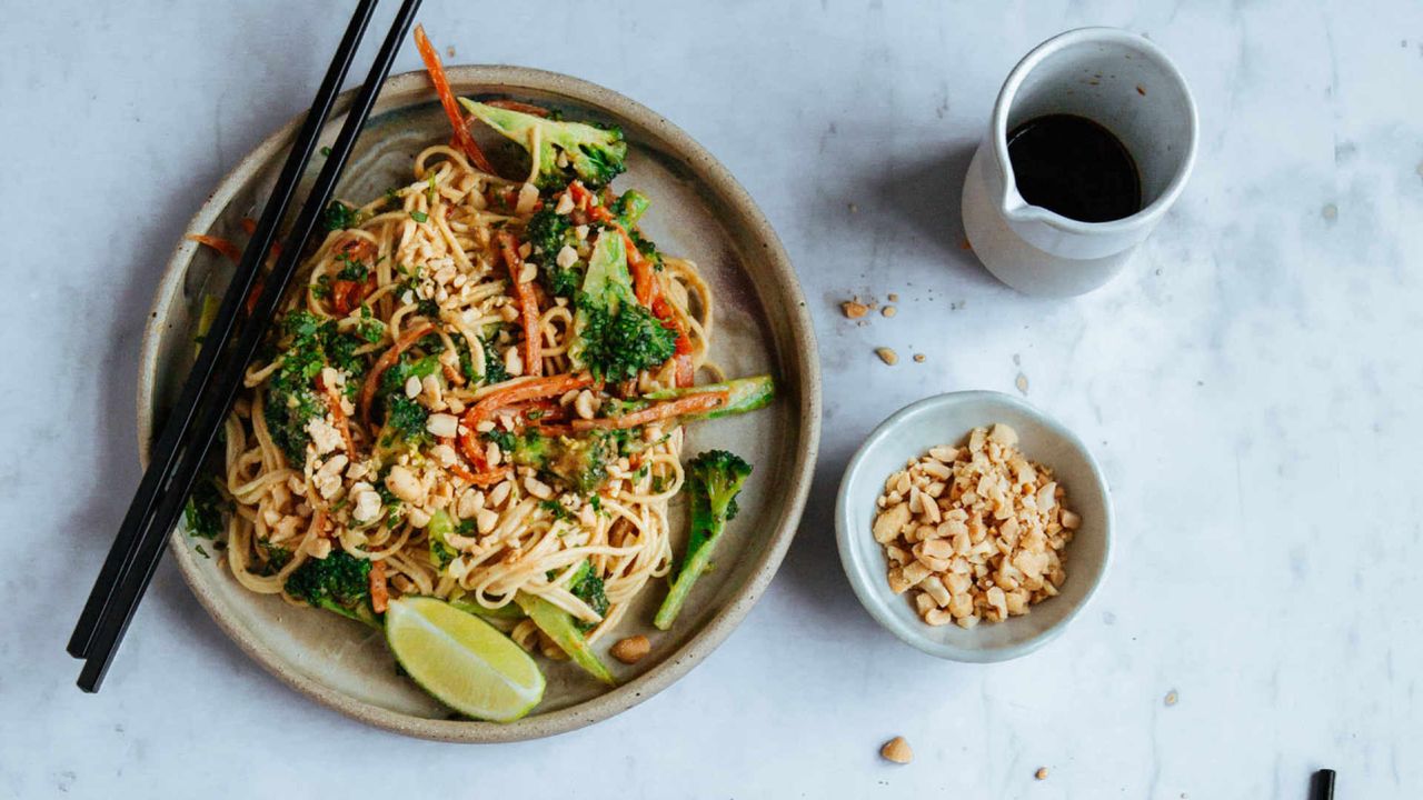 - Βράζουμε τα noodles σύμφωνα με τις οδηγίες της συσκευασίας τους. Ξεπλένουμε με άφθονο νερό, στραγγίζουμε καλά και τα περιχύνουμε με το σησαμέλαιο.